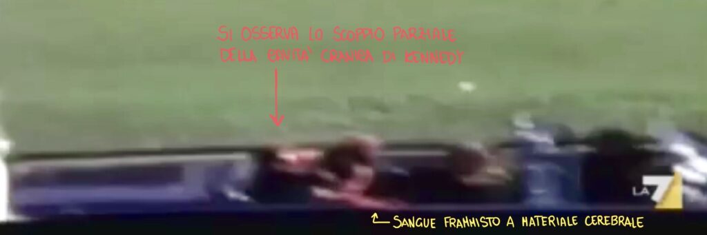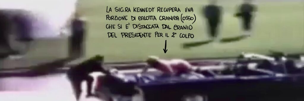 Questo dunque sarebbe un quarto proiettile che non poteva essere uno di quelli che determinò le lesioni craniche, dato che era “conficcato nell’auto di Kennedy, dietro al punto in cui era seduto il presidente”.