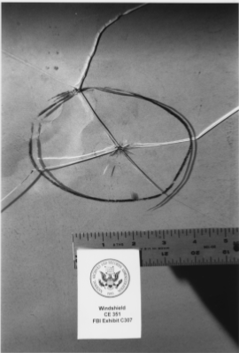 Infine, come è possibile allineare con una delle traiettorie i danneggiamenti del parabrezza, dello specchietto e dell’ “imbottitura” (non è dato sapere esattamente dove si trovava) dell’auto presidenziale?