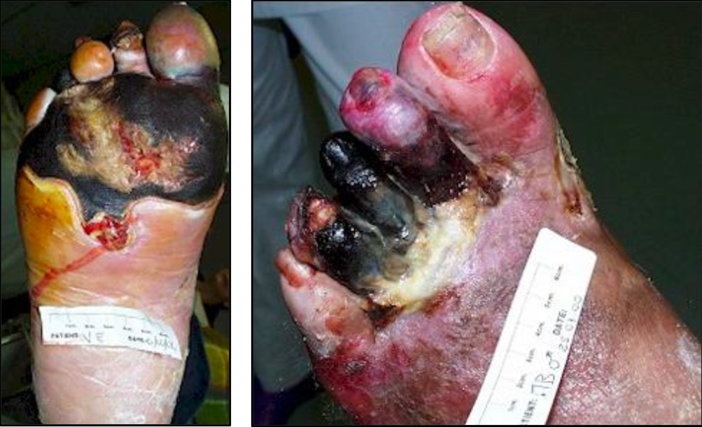 • III° grado: è il più grave perché si ha la necrosi tissutale, per comparsa di trombosi vascolare da ristagno ematico e da agglutinazione delle emazie.